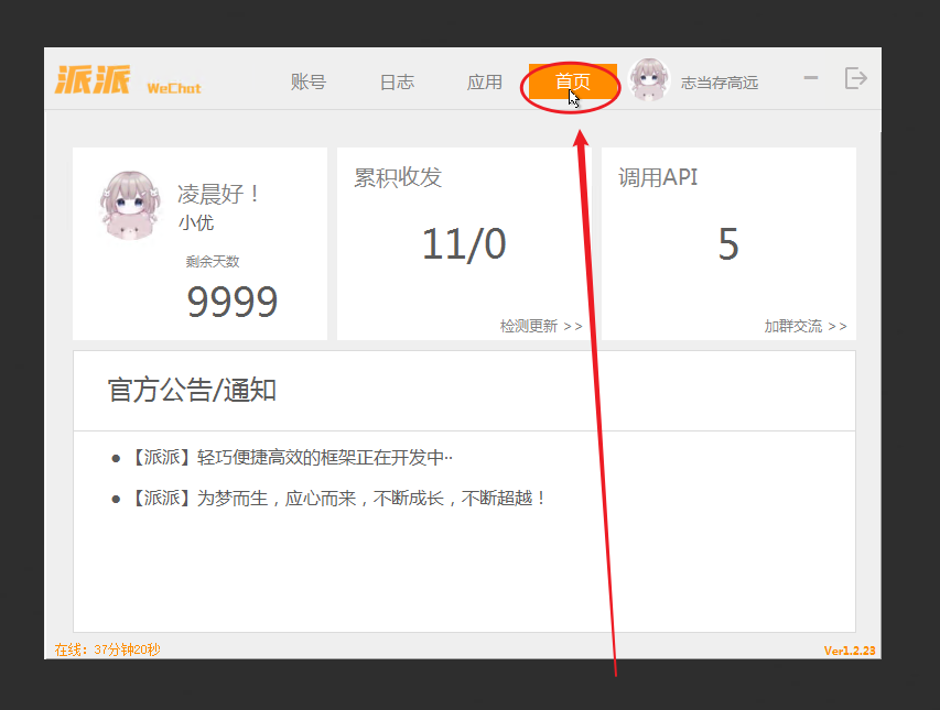 >点击顶部导航栏里的 首页 即可来到框架的首页面