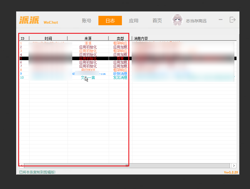 右键单击 [消息内容]() 这一部分,则会把这条日志的消息内容部分复制到你的剪辑版!