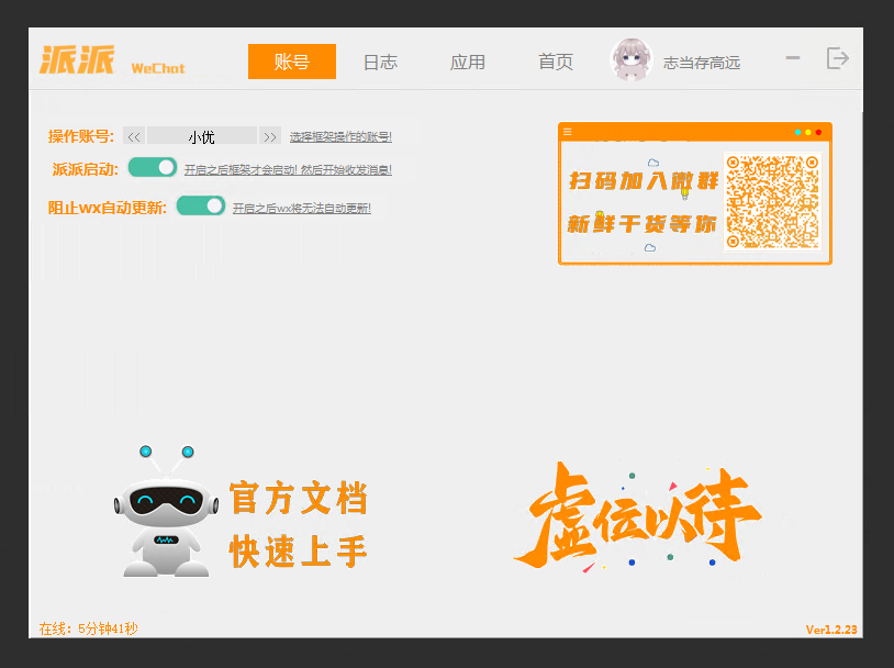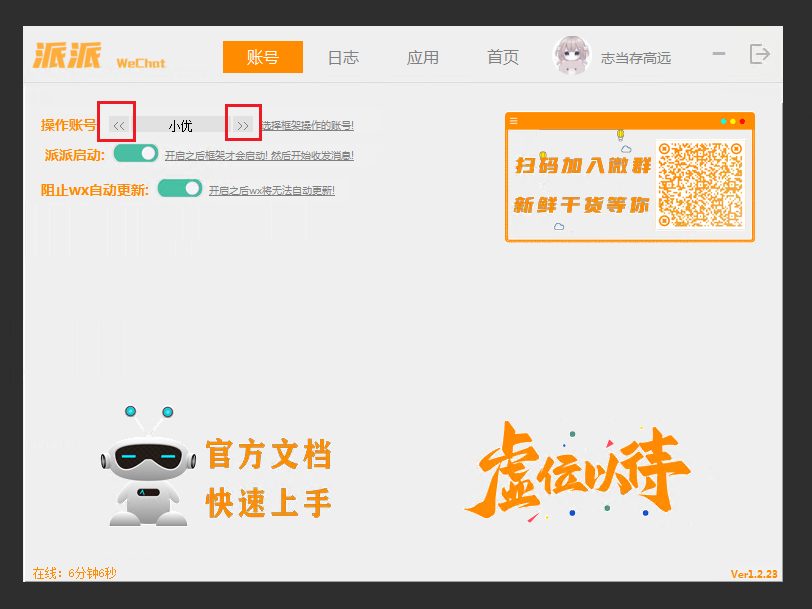 这个打开之后,派派才算是真正的启动。因为从此刻开始,才会接管你的vx,进行收发消息和操作