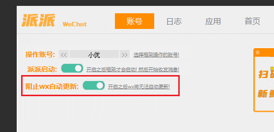 因为派派框架是有要求的,你电脑的vx必须是3.9.9.34版本,有时候打开vx的时候他会要求你强制更新,打开这个功能之后则可以避免vx的自动更新!