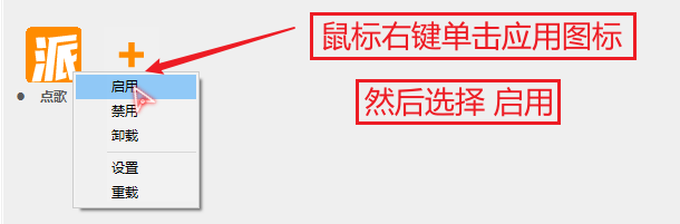 >[success] 添加应用之后,应用默认是关闭的,想要使用我们得先启用这个应用