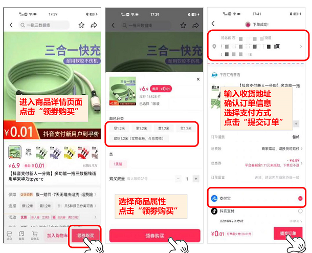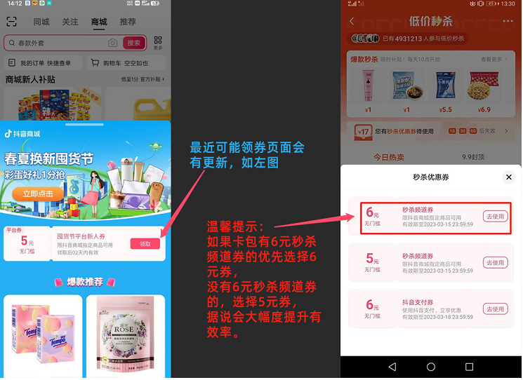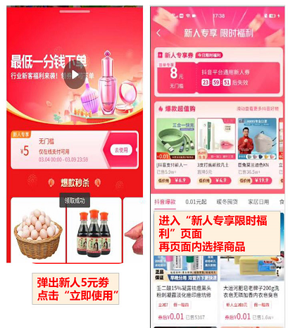 还没在抖音商城购过物的朋友,可以领取抖音商城新人购物优惠券,优惠低至0.01元。