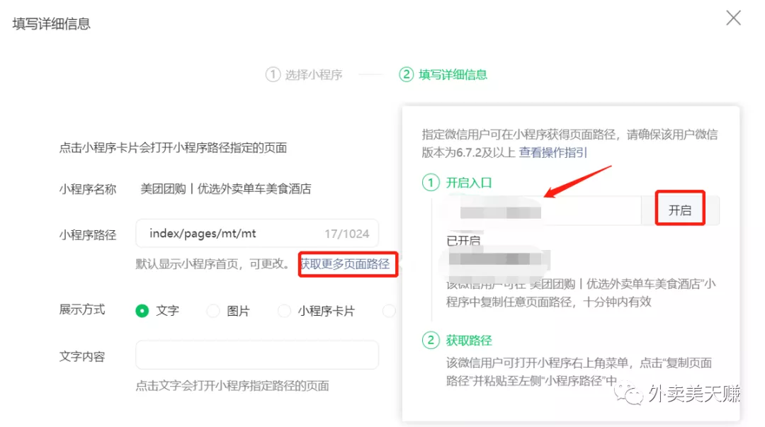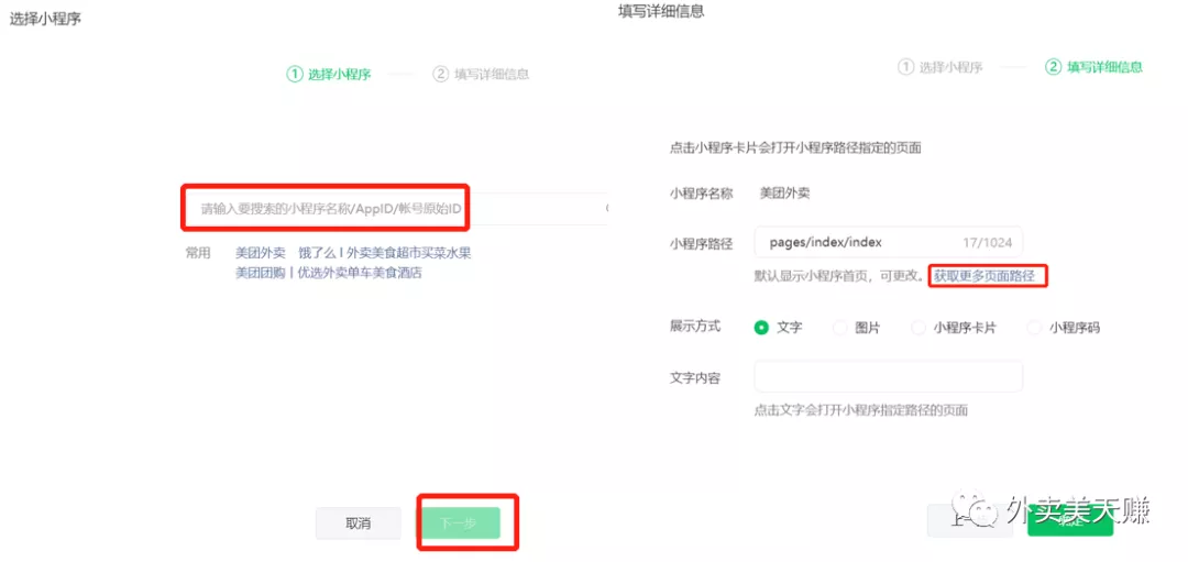 2.将上个步骤获取的AppID粘贴到文本框中\>\>下一步\>>获取更多页面路径