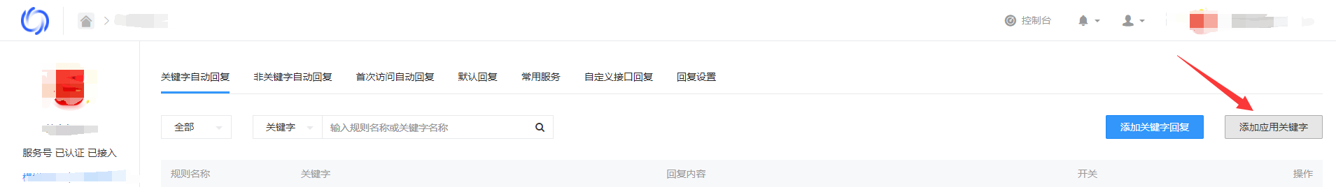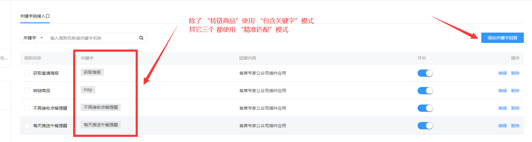 (3),进入 插件后台 “应用入口” => “添加关键字回复”