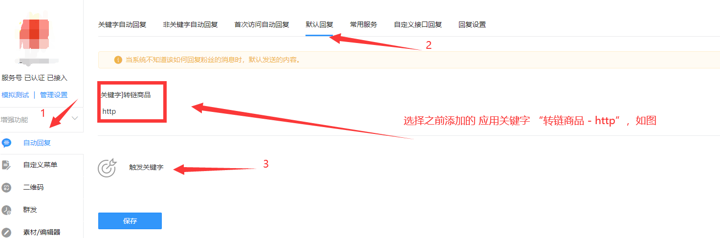 #### **到此,关键字设置 结束,其它 如 “公众号菜单” 及 “首次访问自动回复” 可根据实际需要 自行添加**