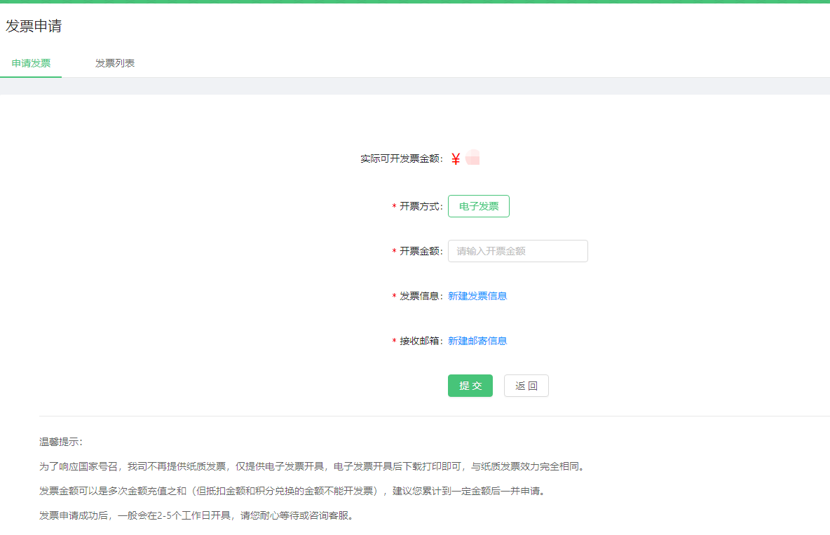 * 发票信息管理:设置发票信息及邮寄信息或收件邮箱。