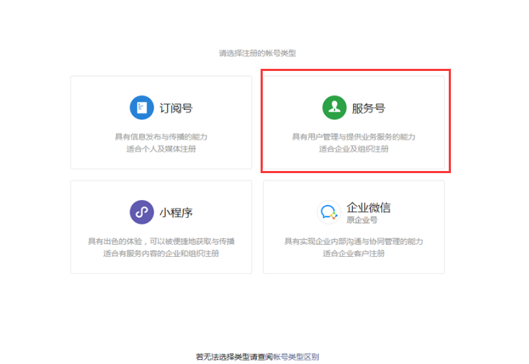 公众平台帐号类型: