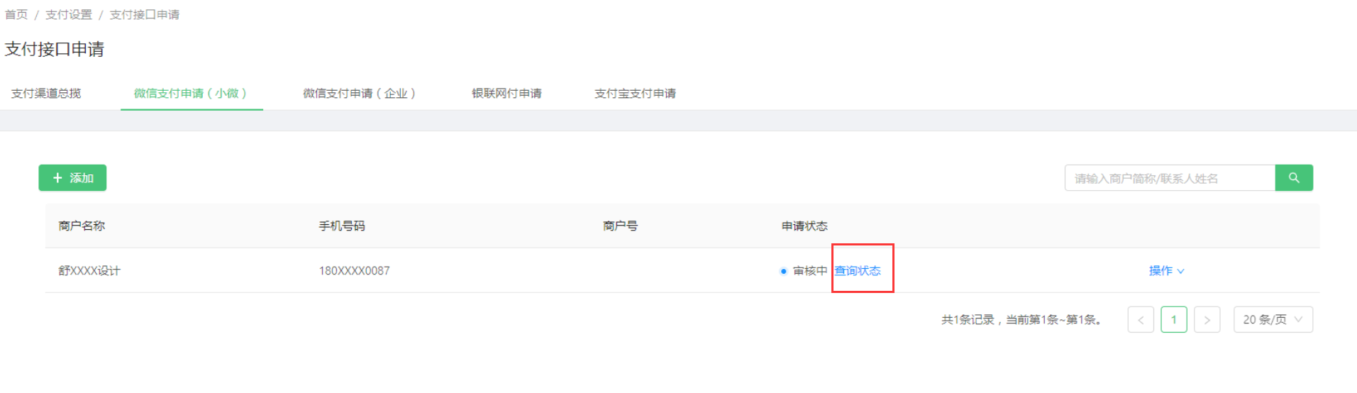 小微商户审核一般为5分钟,请5-10分钟后在列表中点击查询状态,使用商户本人微信进行扫码签署协议。