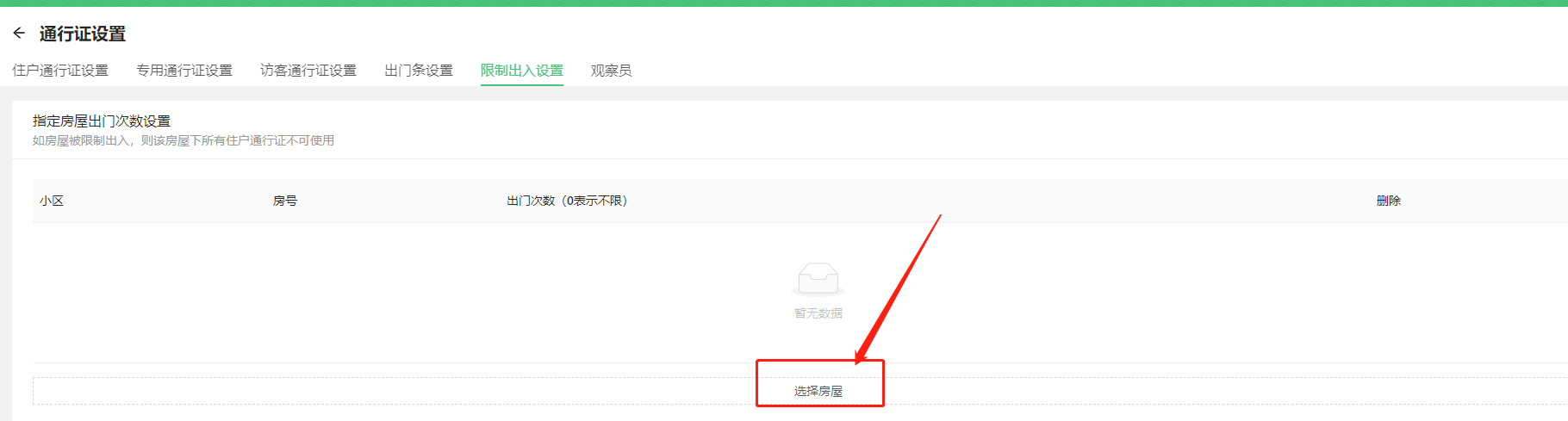 * 选择要单独限制出入的房屋