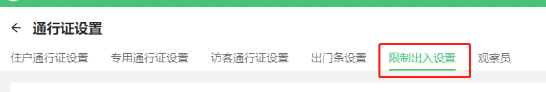 * 进入 出入管理 —》 通行证设置 一》限制出入设置选项卡,