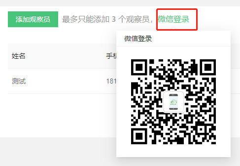 * 观察员添加完成后,点击“微信登录”,