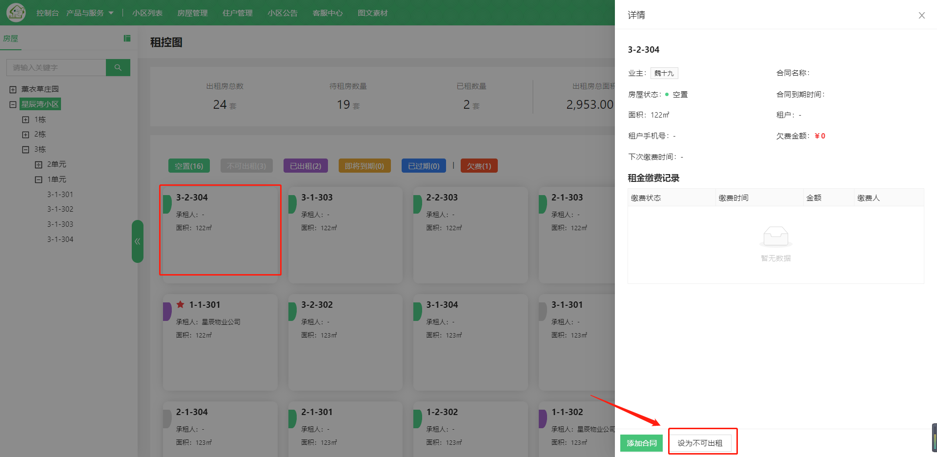 之后可在“租控图”点击房屋查看详情,可再次设置房屋可否出租,如图: