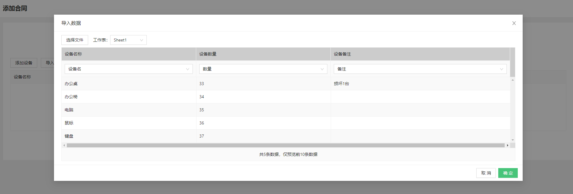 左上角可点击添加按钮完善设备信息,支持单个手动添加以及表格批量导入: