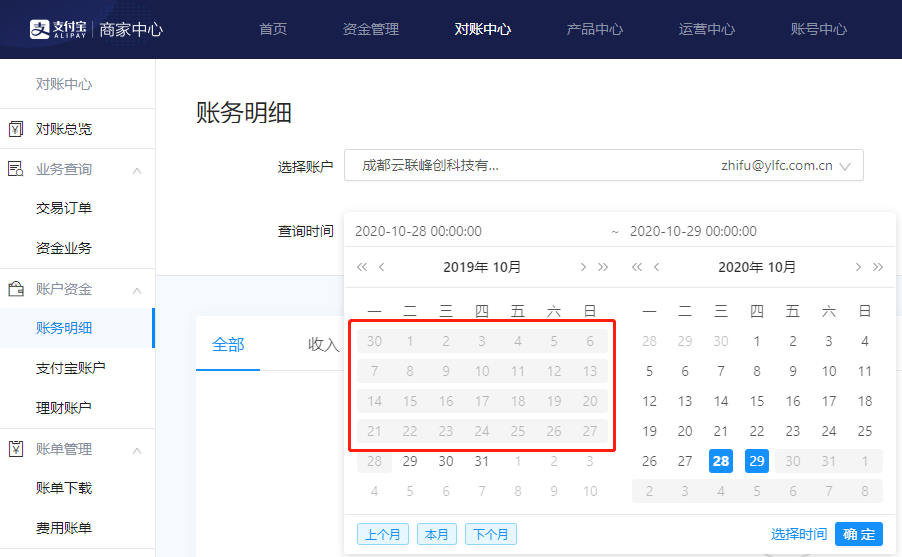 #### 问:为什么账单列表、收入明细中的查询和导出功能时间跨度不能超过一年?