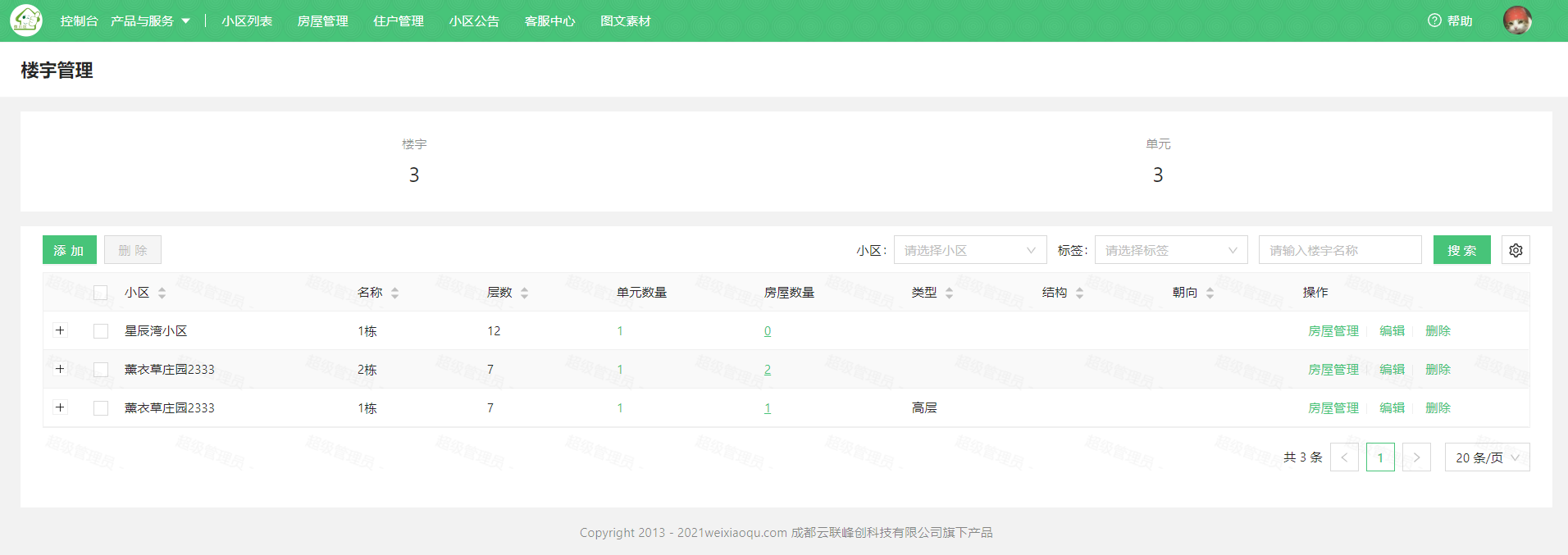 该功能旨在对小区楼宇进行集中管理。