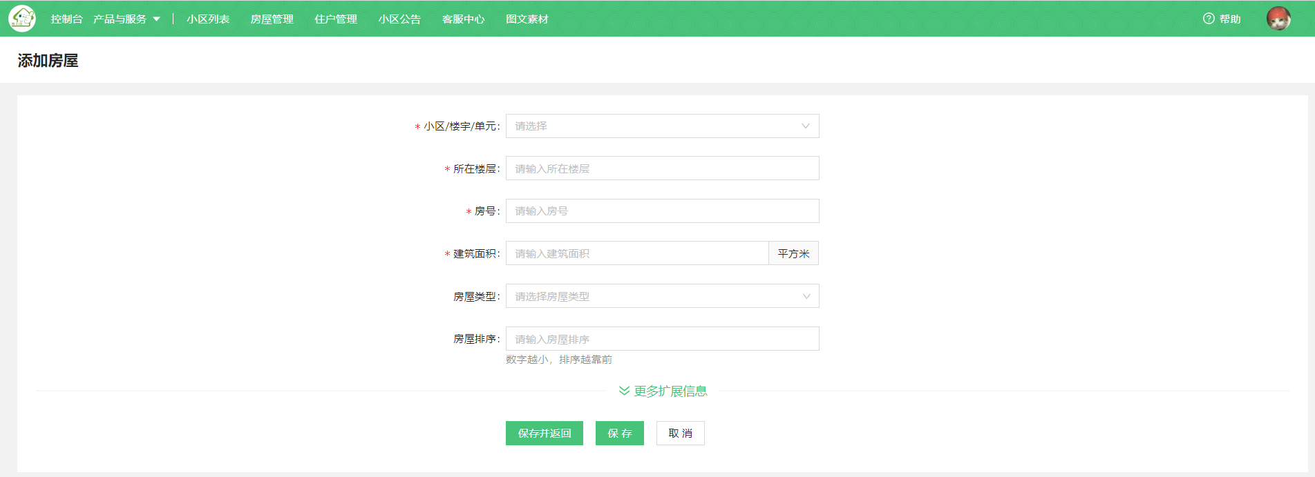 房屋管理的核心功能是添加房屋,添加房屋可分为单个添加和批量导入,添加房屋后可对房屋进行关联住户。