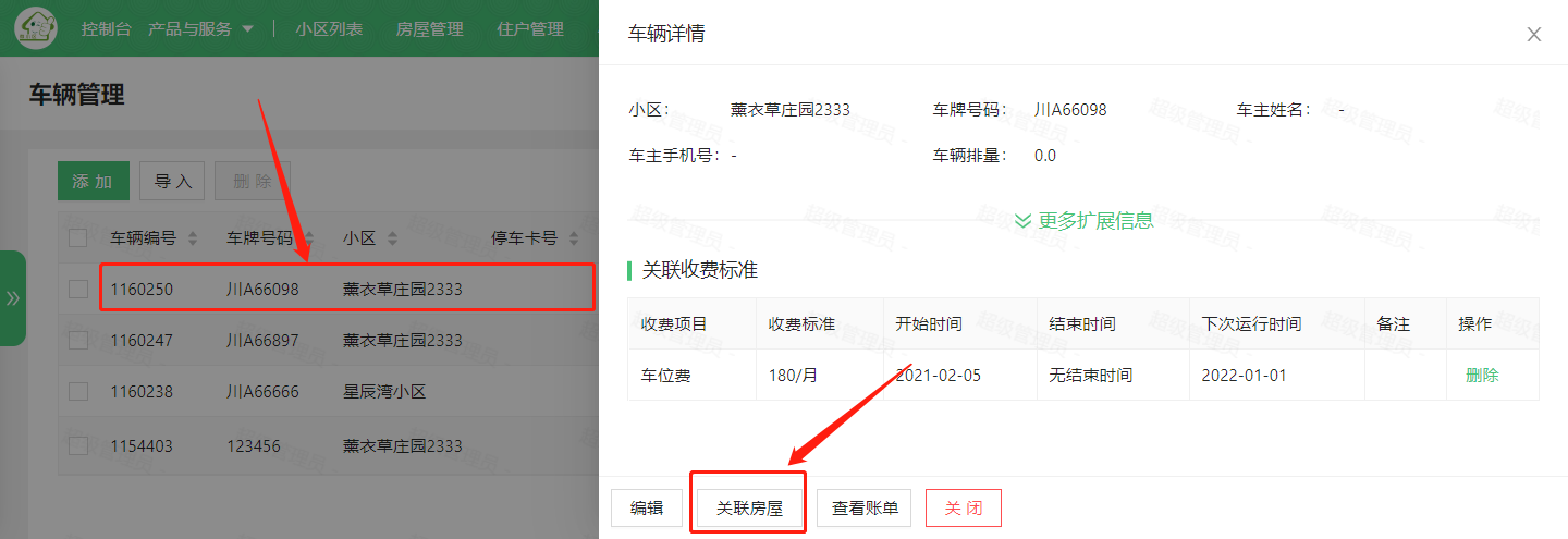 选择绑定的房屋,然后点击“确认”按钮即可完成车辆与房屋的绑定。