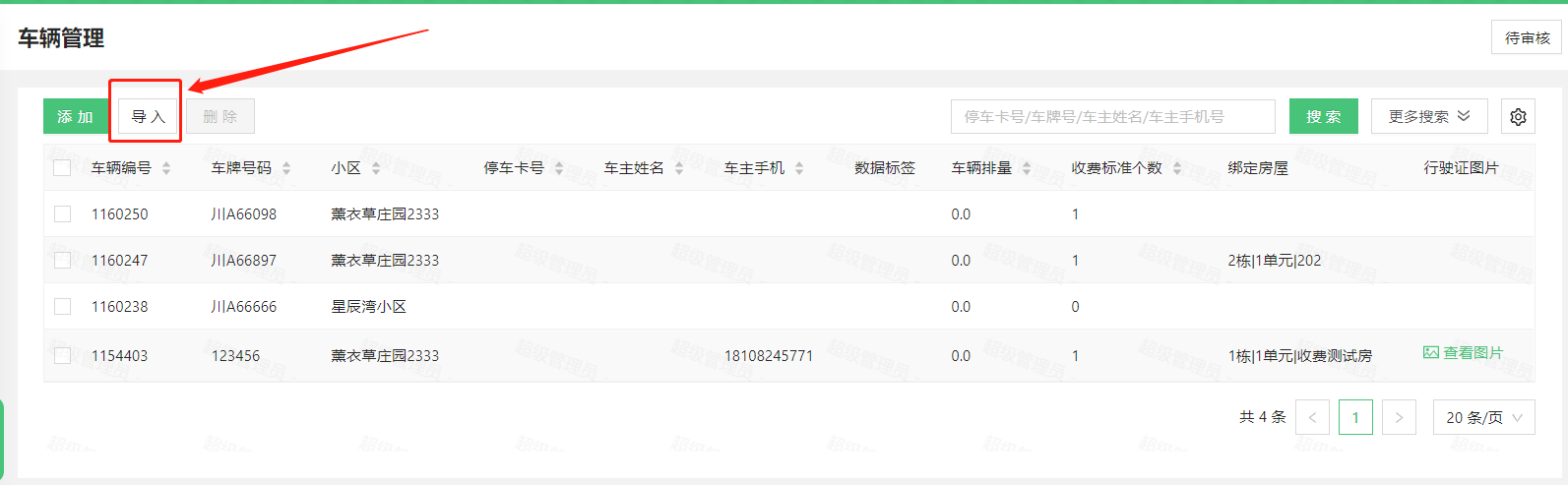 > * 车位号,必须存在当前小区,否则导入车辆后,车位号信息为空。