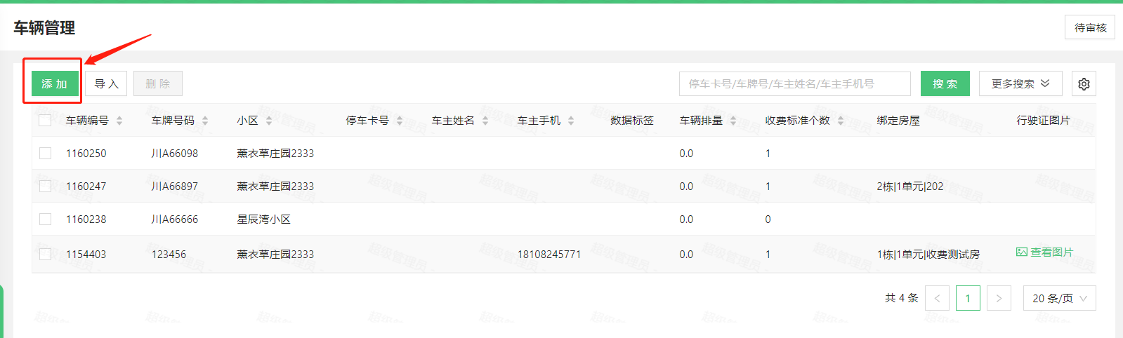 微物业管理中心—》数据中心—》车辆管理