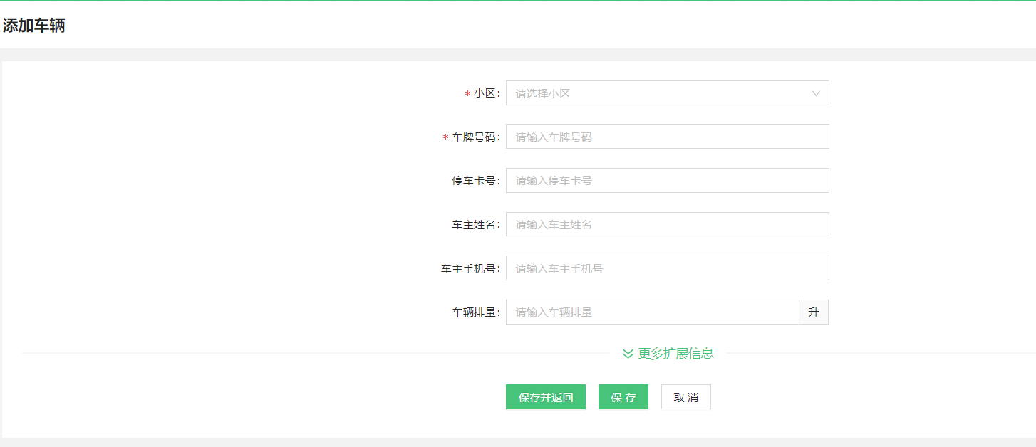填写车辆信息,可展开更多扩展信息。