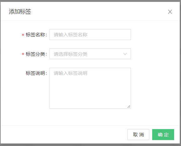 填写标签名称,选择标签分类,填写标签说明,然后点击“确定”即可添加成功。