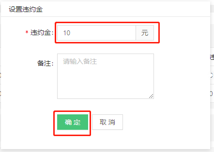 * 在弹出的功能框里,输入违约金金额、再点击“确定”。(如:需要修改违约金为10元,就直接输入10,再点击确定)
