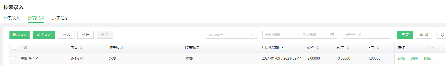 > * 抄表数据对应的未缴账单完成收款后,将不能对抄表数据进行修改和删除。