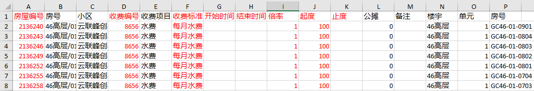 > * 如房屋某一月份的抄表数据已存在,导入重复数据覆盖原数据。