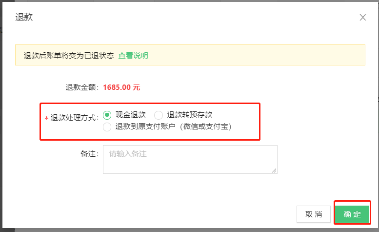 > * 退款到原支付账户(微信或支付宝),需要微信商户或支付宝商户有足够余额。