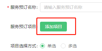 进入添加预订服务界面,点击【添加项目】按钮,如下图所示:
