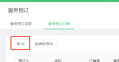 订单筛选后,点击左上角“导出”按钮即可导出预订记录。