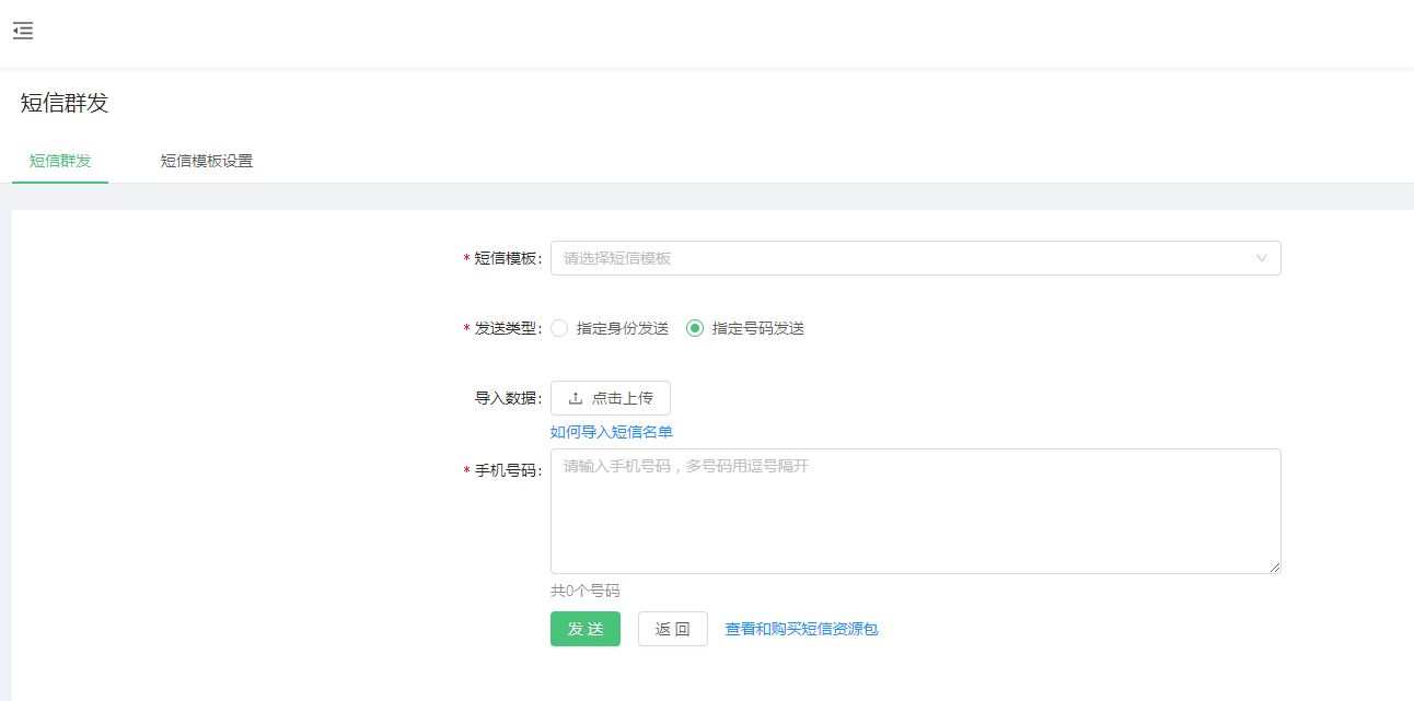### 2、群发短信