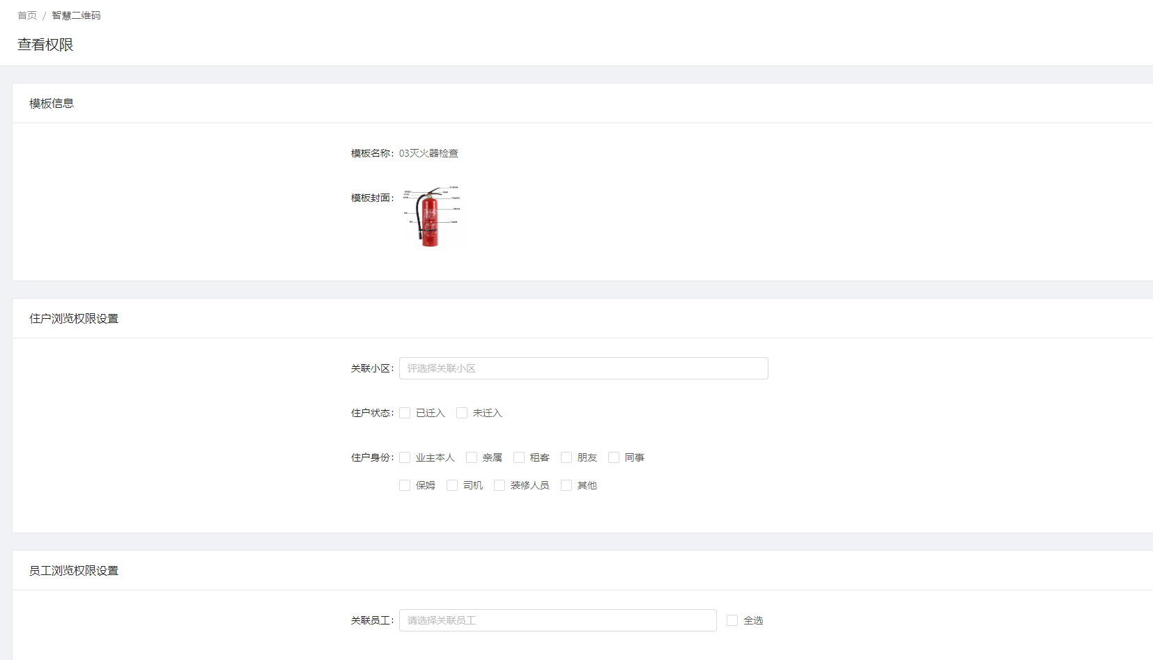 在查看权限设置页面,我们可以对此二维码模板设置查看权限。