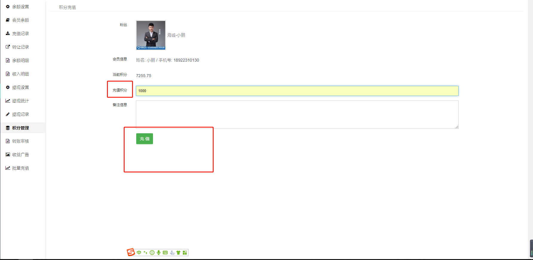 - 后台如何给会员冲减积分或余额