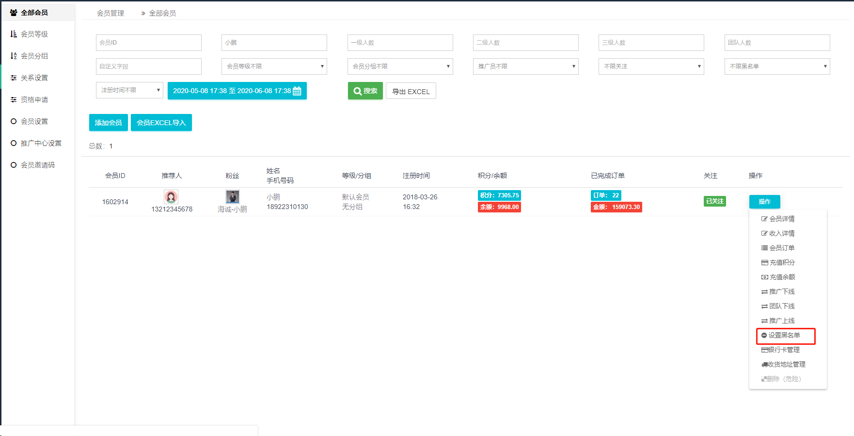 >[danger]## **将恶意捣乱、破坏商城正常运营的用户进行拉黑处理。拉黑的会员无法进入商城**