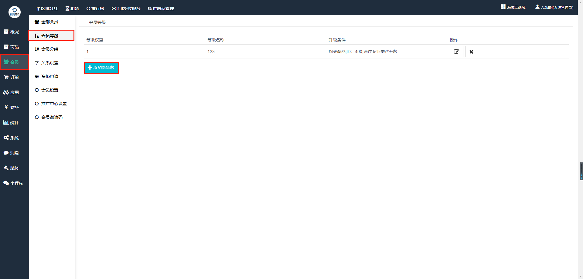 ## **2**、**会员等级添加**