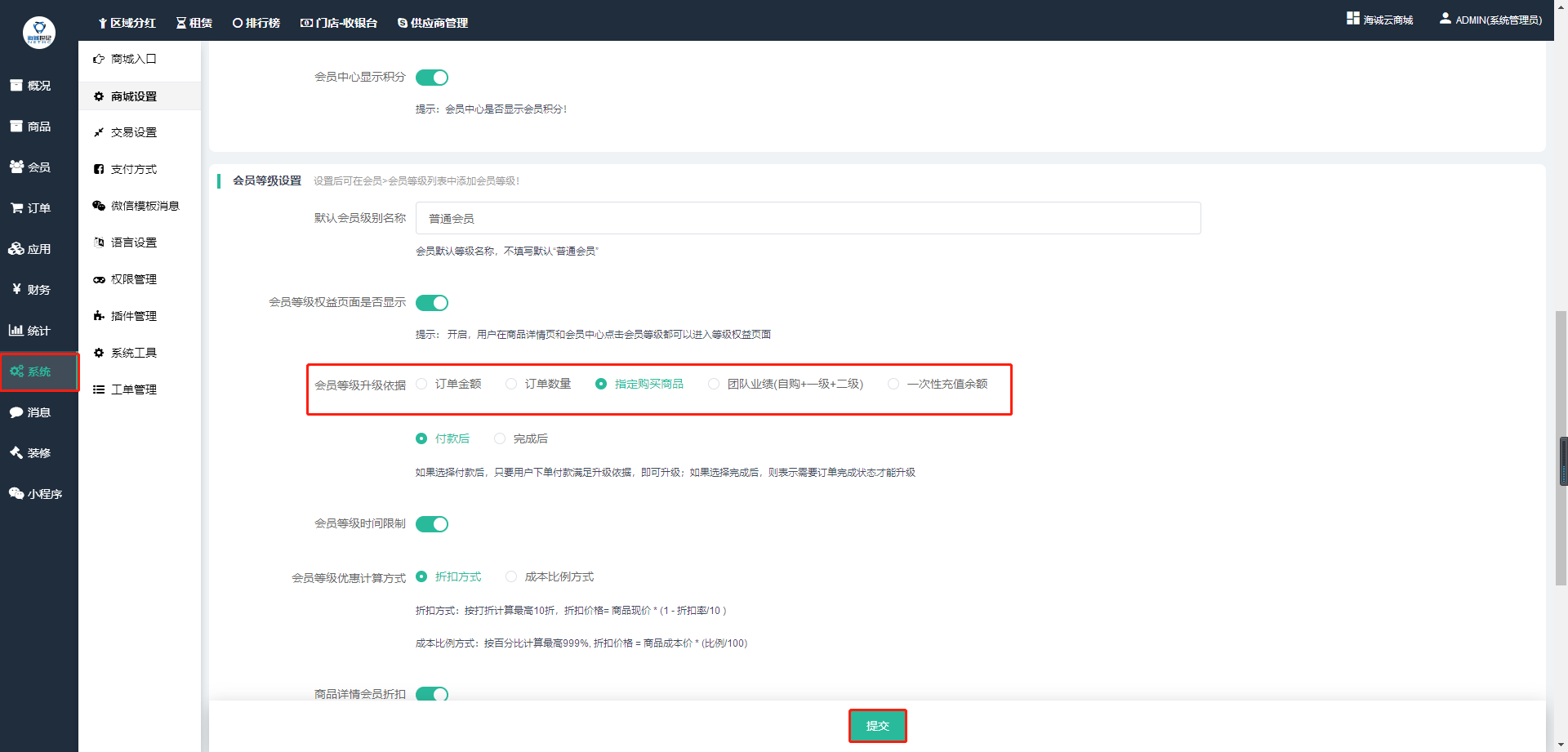 ## 商城后台——系统——商城设置——会员设置