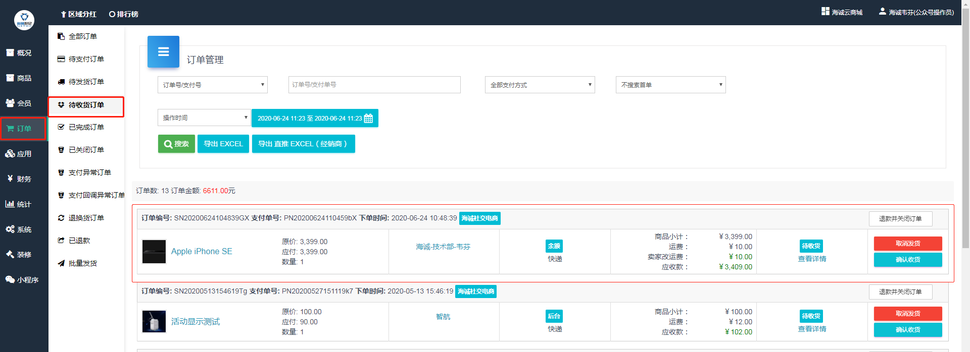 # :-: **待收货订单**