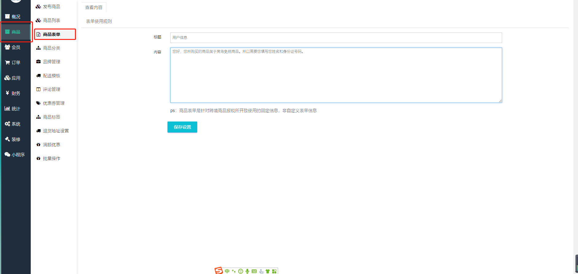## 用户购买跨境商品填写表单时显示的使用规则,内容可以自定义。