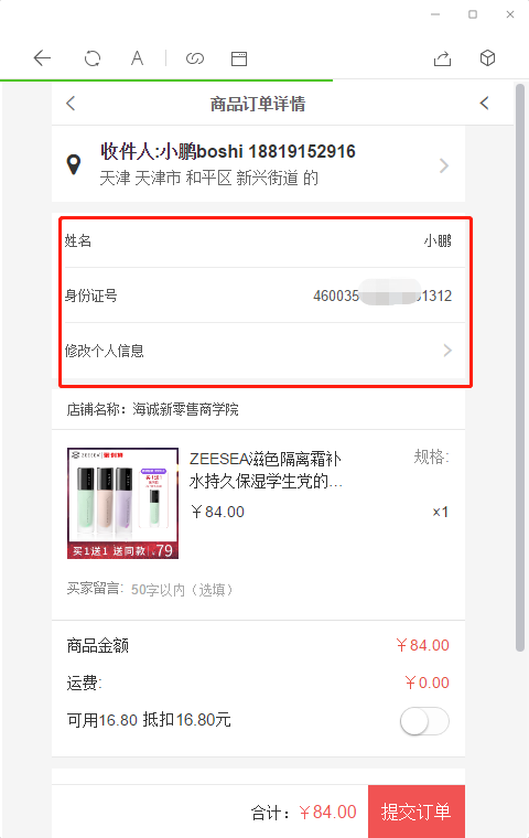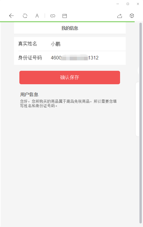 ## 商品表单是针对跨境商品报税使用。要求用户下单的时候需要填写自己的姓名和身份证号码。