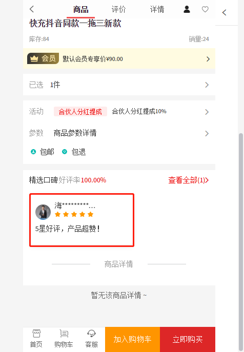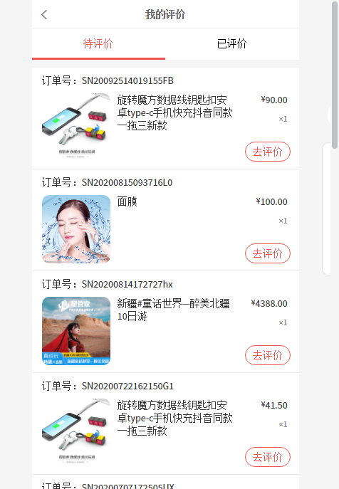 ## 用户自己评价商品。需要进入会员中心——评论功能,找到自己已完成的订单即可进行评价。