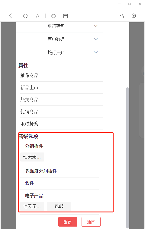 ## **前端在搜索商品时才会有体现标签,方便用户筛选商品。**