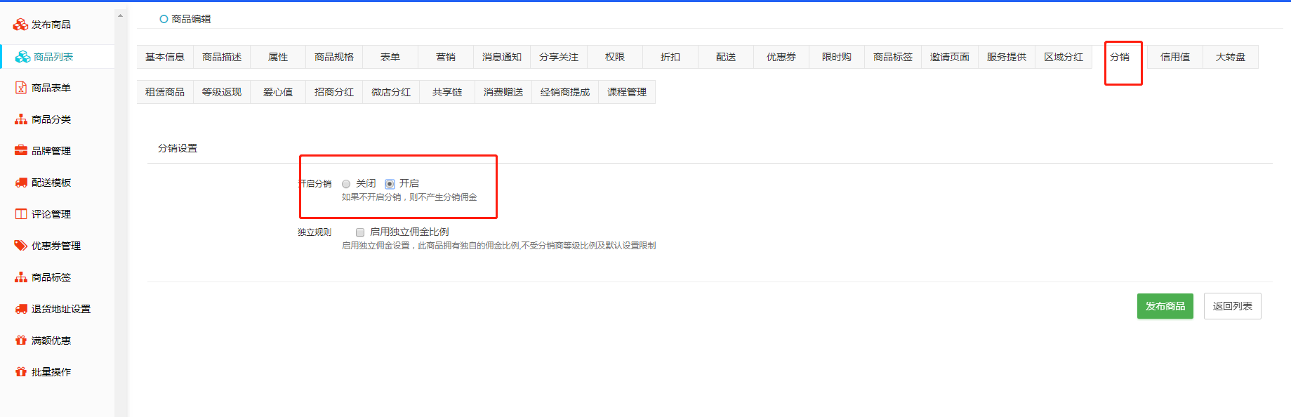 ## 1、支持商家在后台添加多个分销商等级,不同的等级可以获得不同的分销佣金比例;商家可按照不同等级进行管理分销商。