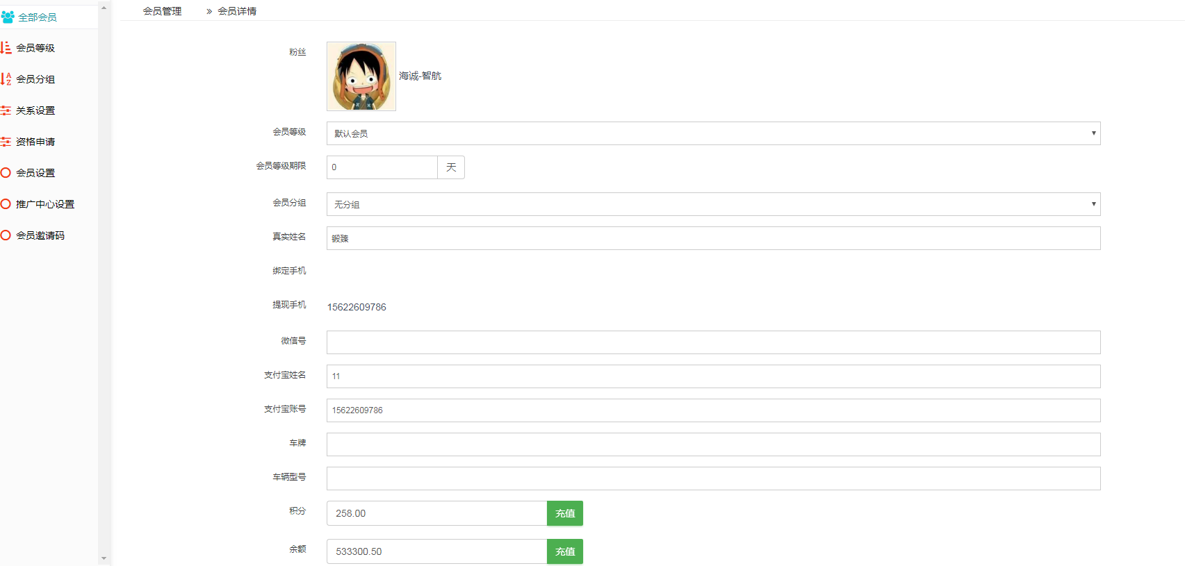 ## ⑴ 点击操作—查看会员信息,后台截图: