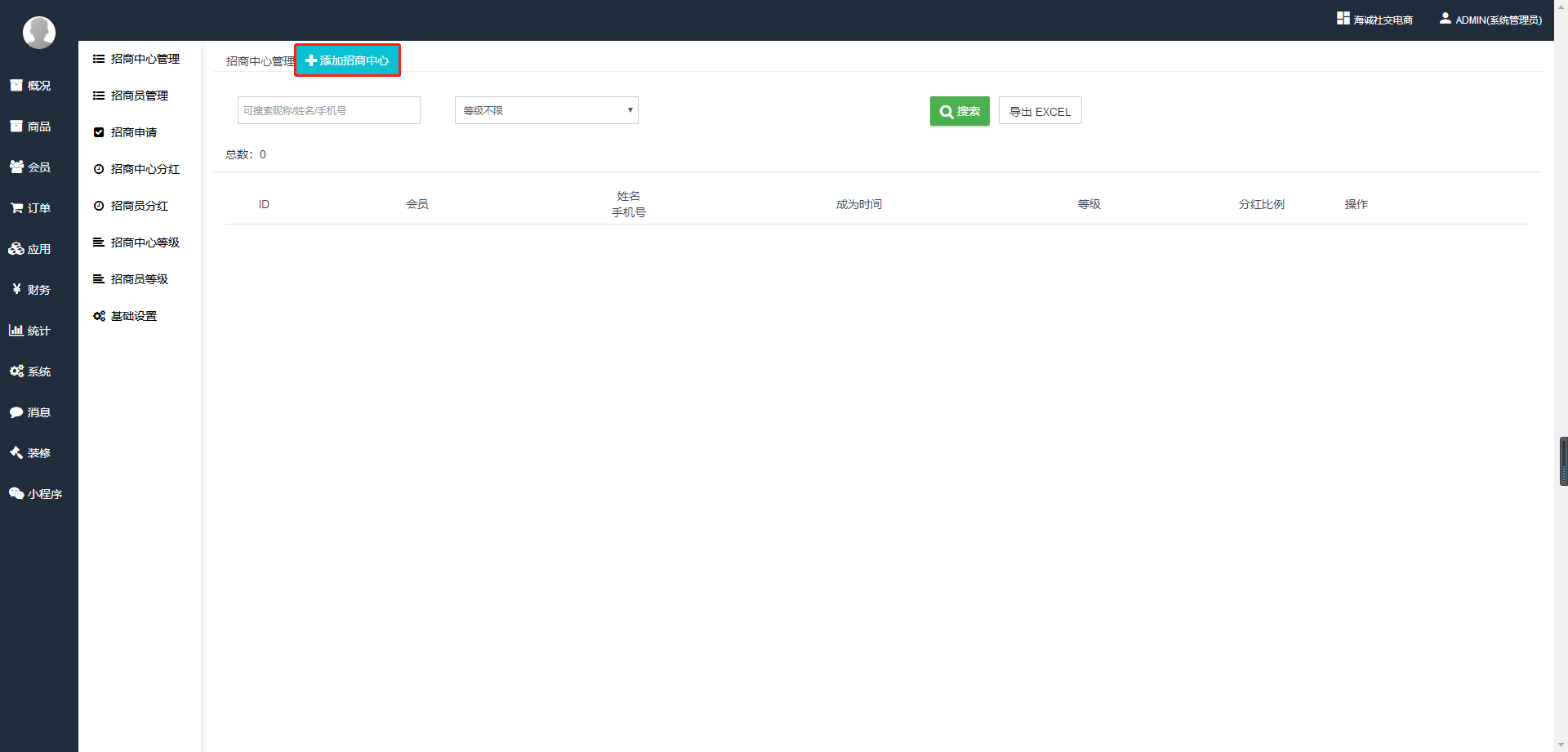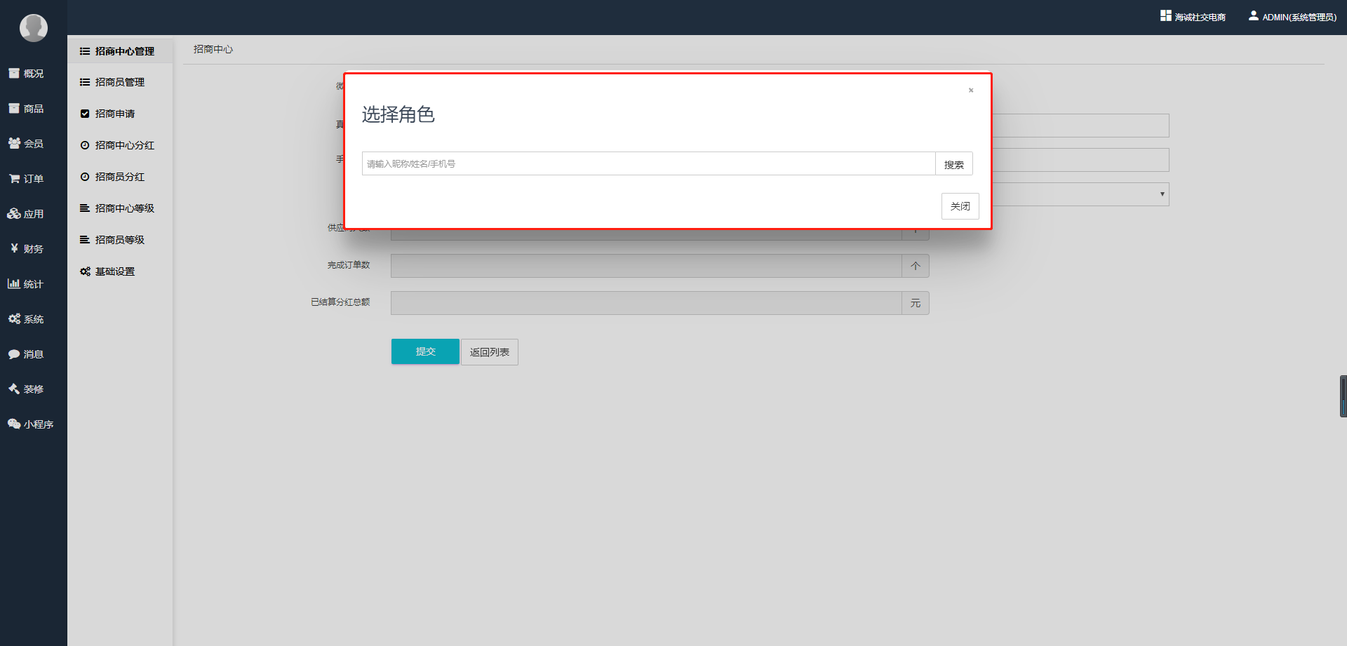 ## **商城后台——应用——招商——招商员管理。**