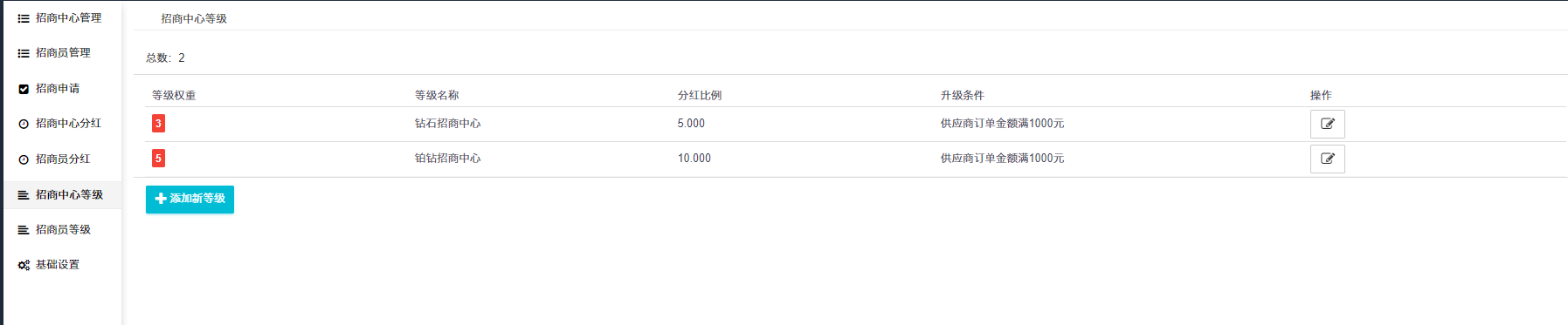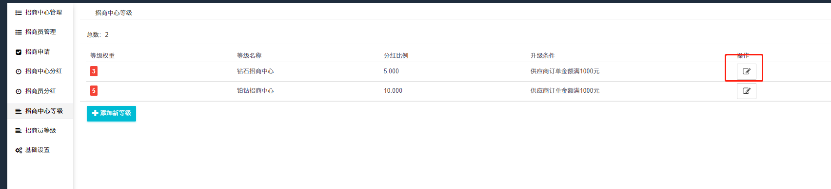 ## ③编辑等级权重,等级名称,分红比例,和升级条件等