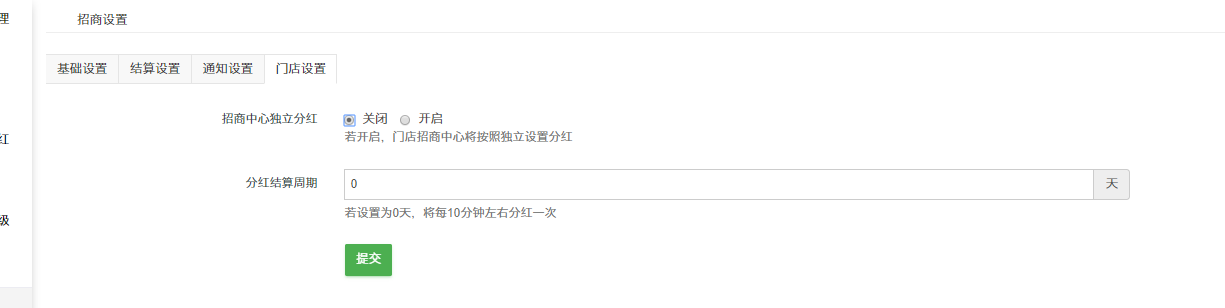 ## 若开启,门店招商中心将按照独立设置分红