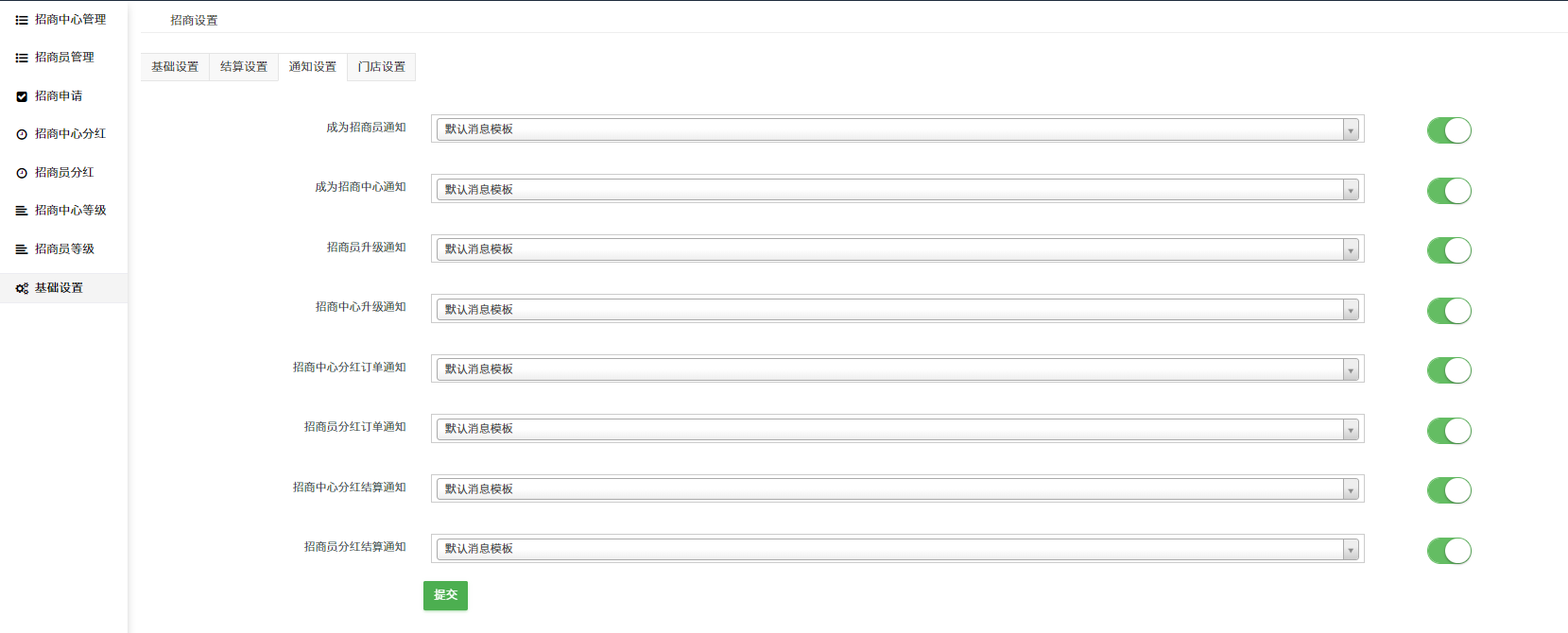 ## 【基础设置】【结算设置】【通知设置】【门店设置】
