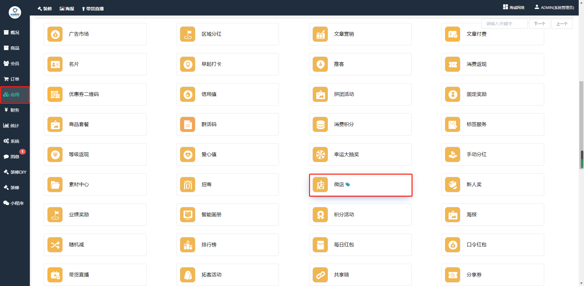 ## **商城后台——应用——微店——点击进入**