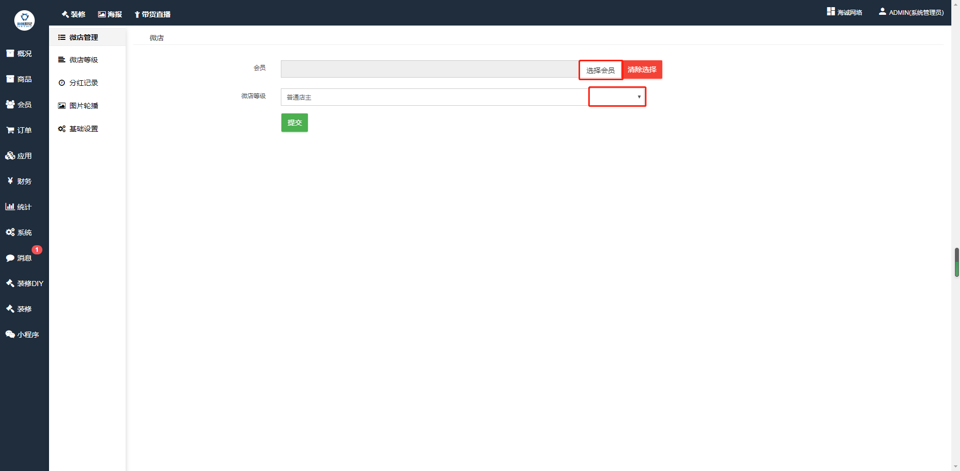 ## 5、选择会员成为店主,选择添加微店的等级,点击提交